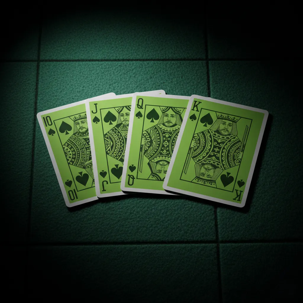 ไพ่ Royal Straight Flush ประกอบด้วยไพ่ A, K, Q, J, 10 ที่เป็นดอกเดียวกันทั้งหมด นี่คือไพ่ชุดที่แข็งแกร่งที่สุดในโป๊กเกอร์